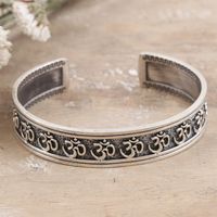 Sterling Silver Cuff Bracelet with Traditional Motifs 'India's Blessing' Item ID: 2671789212