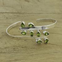 Sterling Silver Cuff Peridot Bracelet Modern Jewelry 'Forest Fern' Item ID: 2671794720
