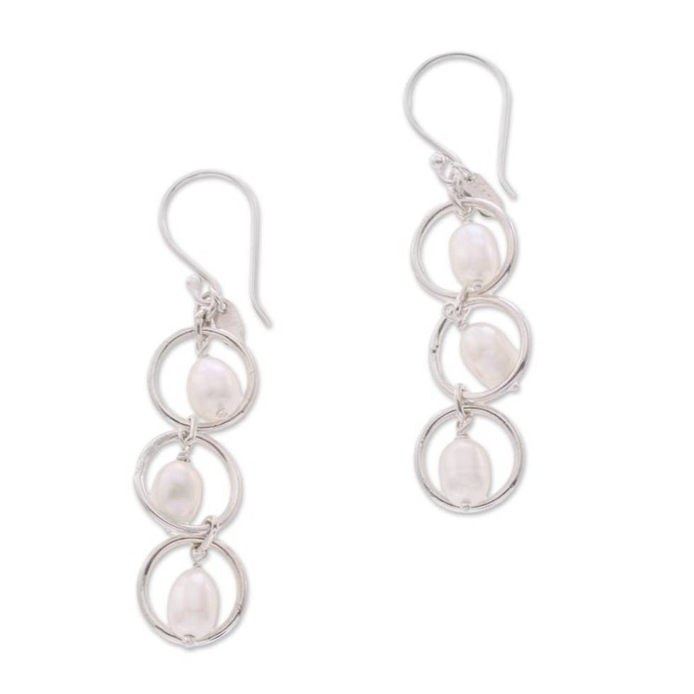 Sterling Silver Cultured Freshwater Pearl Dangle Earrings 'Bulan Hoops' Item ID: 2671736936