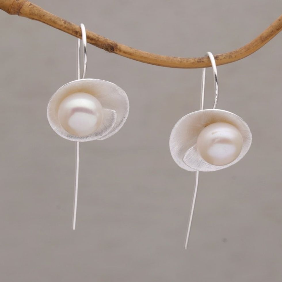 Sterling Silver Cultured Freshwater Pearl Drop Earrings 'Lily Glamour' Item ID: 2671473188