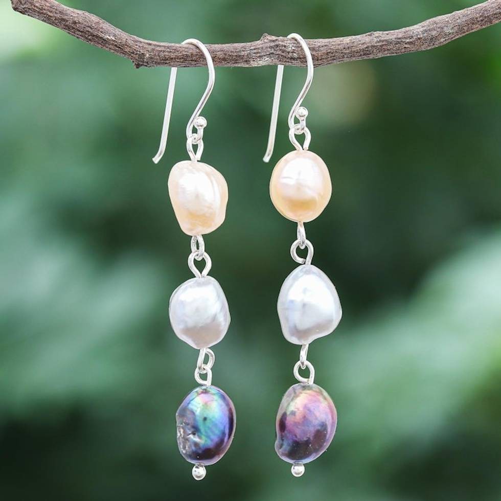 Sterling Silver Cultured Pearl Dangle Earrings From Thailand 'Candy Pearl' Item ID: 2669926440