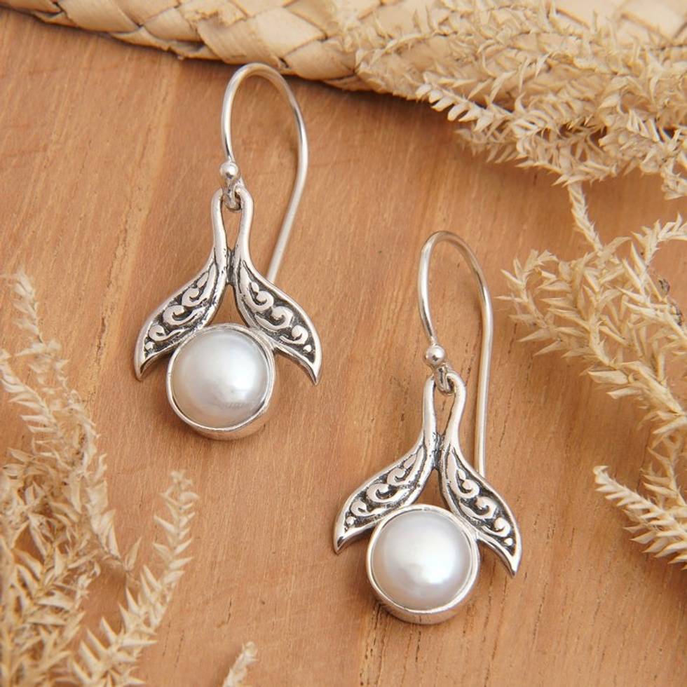 Sterling Silver Cultured Pearl Fishtail Dangle Earrings 'Celestial Purity' Item ID: 2671671208