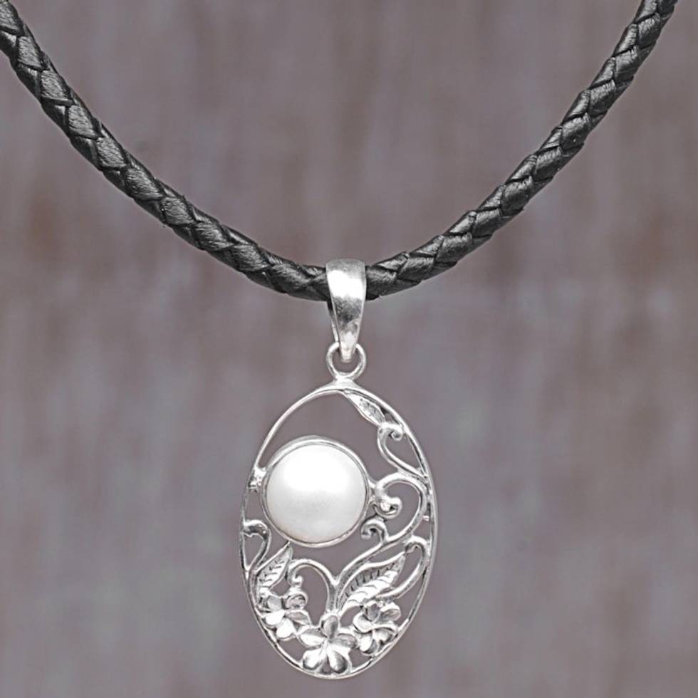 Sterling Silver Cultured Pearl Pendant Necklace with Leather 'Eye of the Moon' Item ID: 2671734239