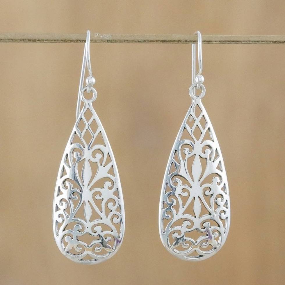 Sterling Silver Curlicue Dangle Earrings from Thailand 'Espalier' Item ID: 2671641204