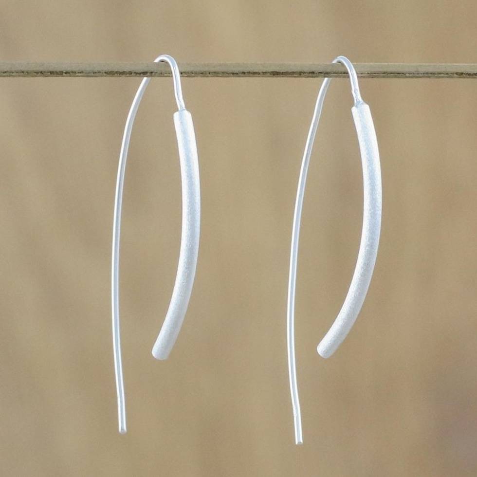 Sterling Silver Curved Drop Earrings from Thailand 'Cattails' Item ID: 2671801199