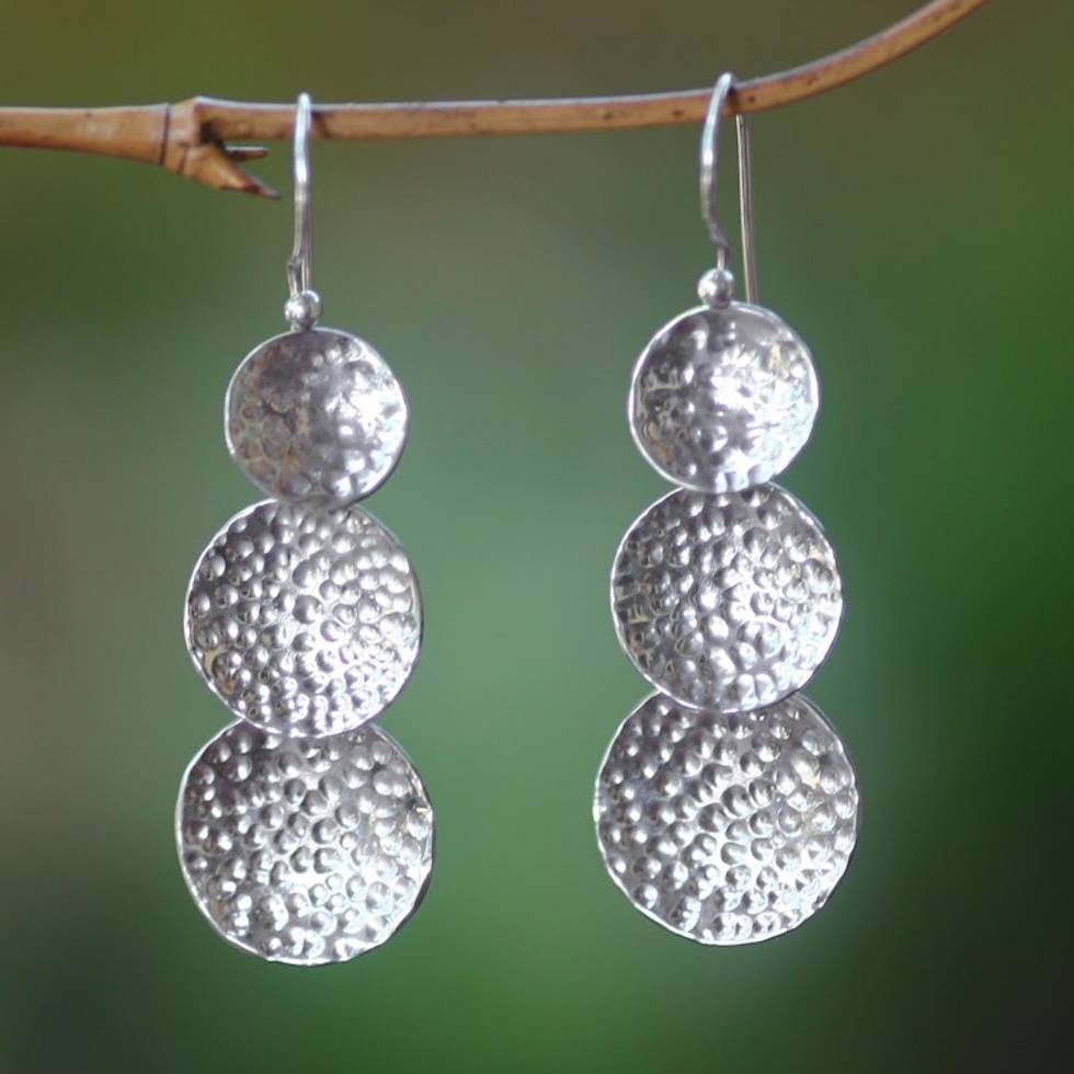 Sterling silver dangle earrings 'Three Moons' Item ID: 2671821676