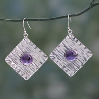 Sterling Silver Dangle Earrings Crafted with Amethysts 'Purple Connection' Item ID: 2671793678