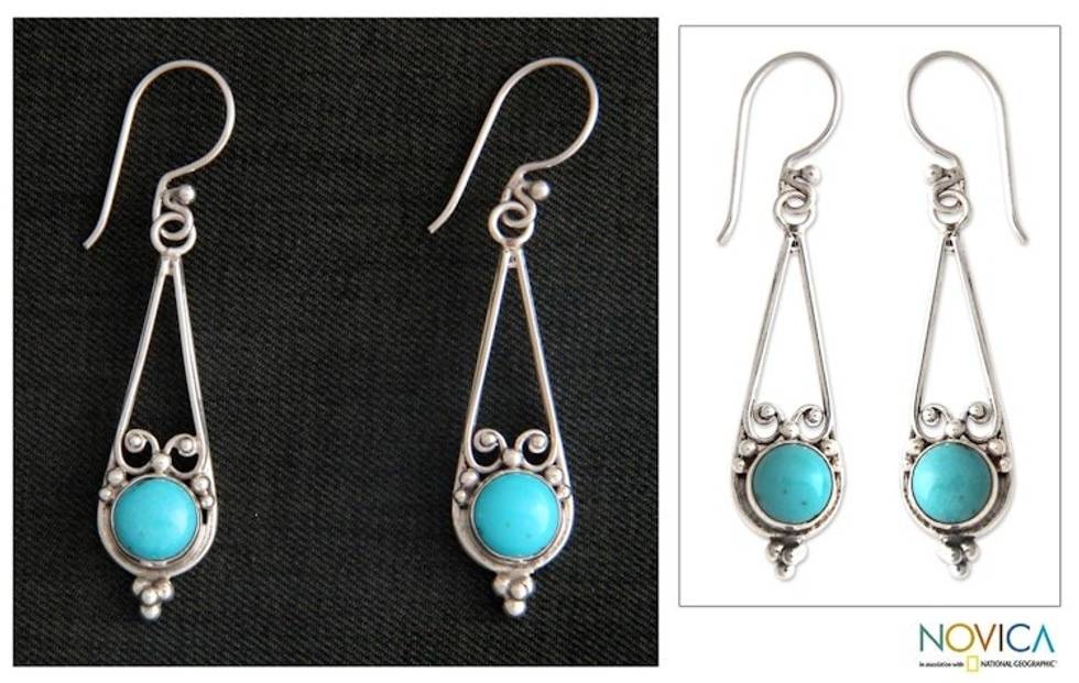 It's hard to express how extremely pleased I am with these earrings. The quality, styling, size, and color of the stones are gorgeous. I have about 50 pairs of earrings, and these are now my FAVORITE! Another reviewer mentioned the stones were not as vivid blue as the photo portrayed. I would agree they are not bright blue, however, I am so thrilled with the actual shade...they are rather a medium almost 'gray blue'. These will go beautifully with denim clothing and other colors as well. I could not be more pleased and wish I could let the artisan know how happy I am! Thank you, thank you, thank you!