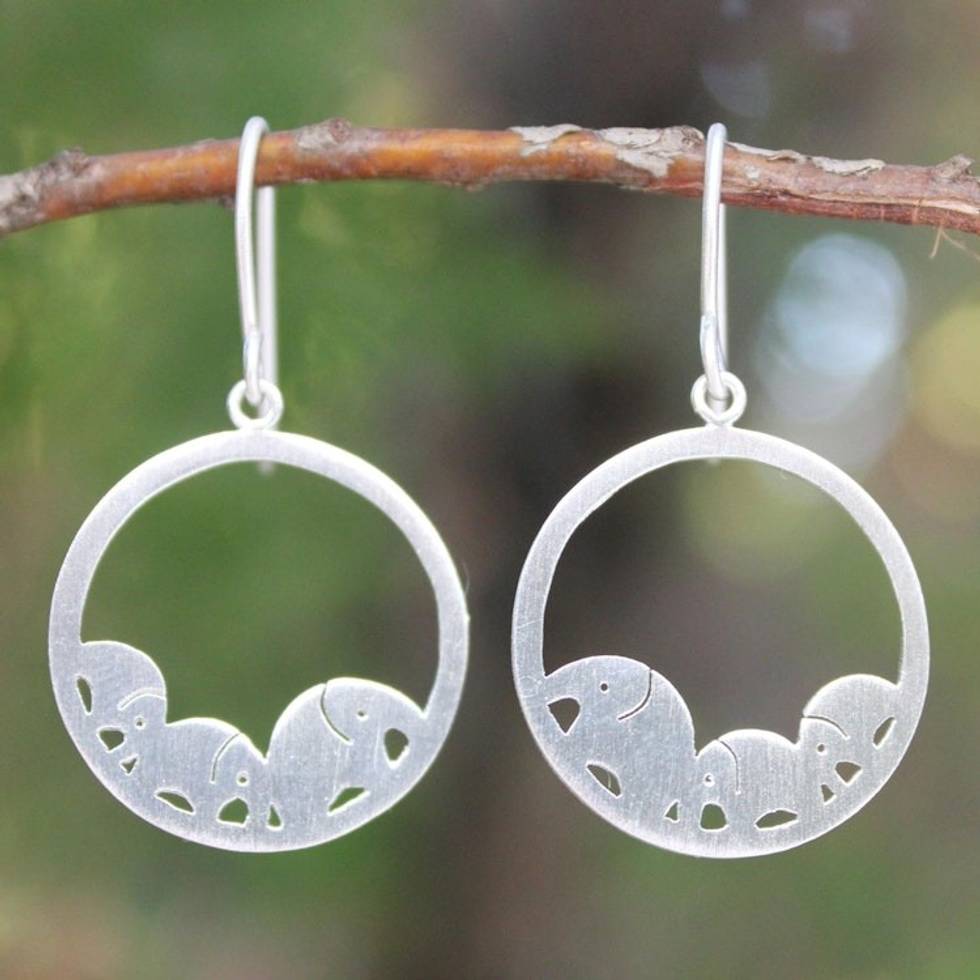 Sterling Silver Dangle Earrings 'Elephant Journeys' Item ID: 2671802681