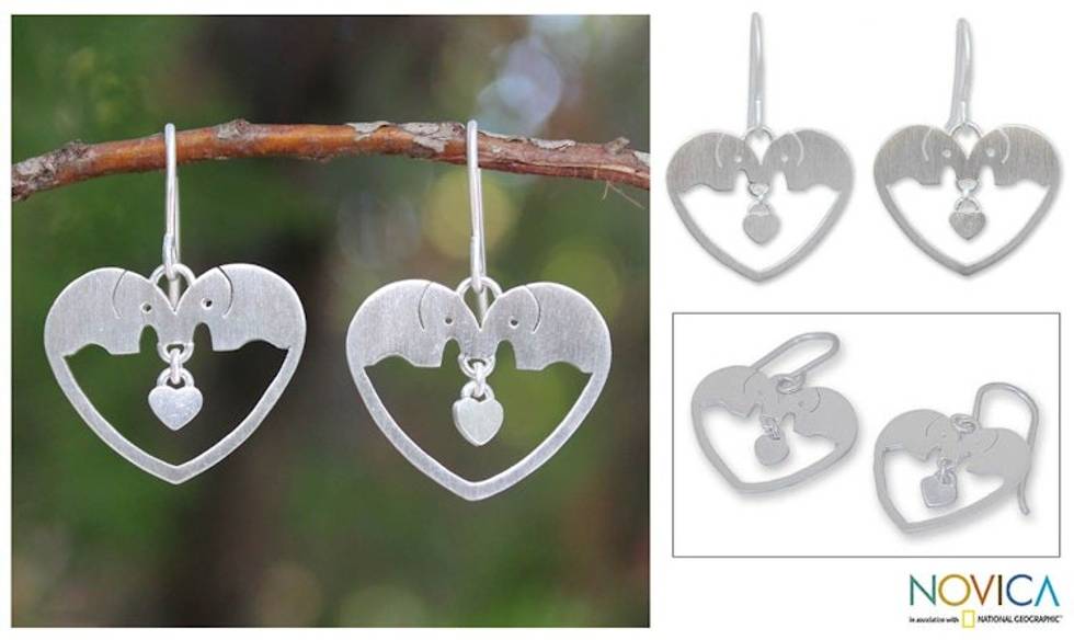 Sterling Silver Dangle Earrings 'Elephants in Love' Item ID: 2671802782