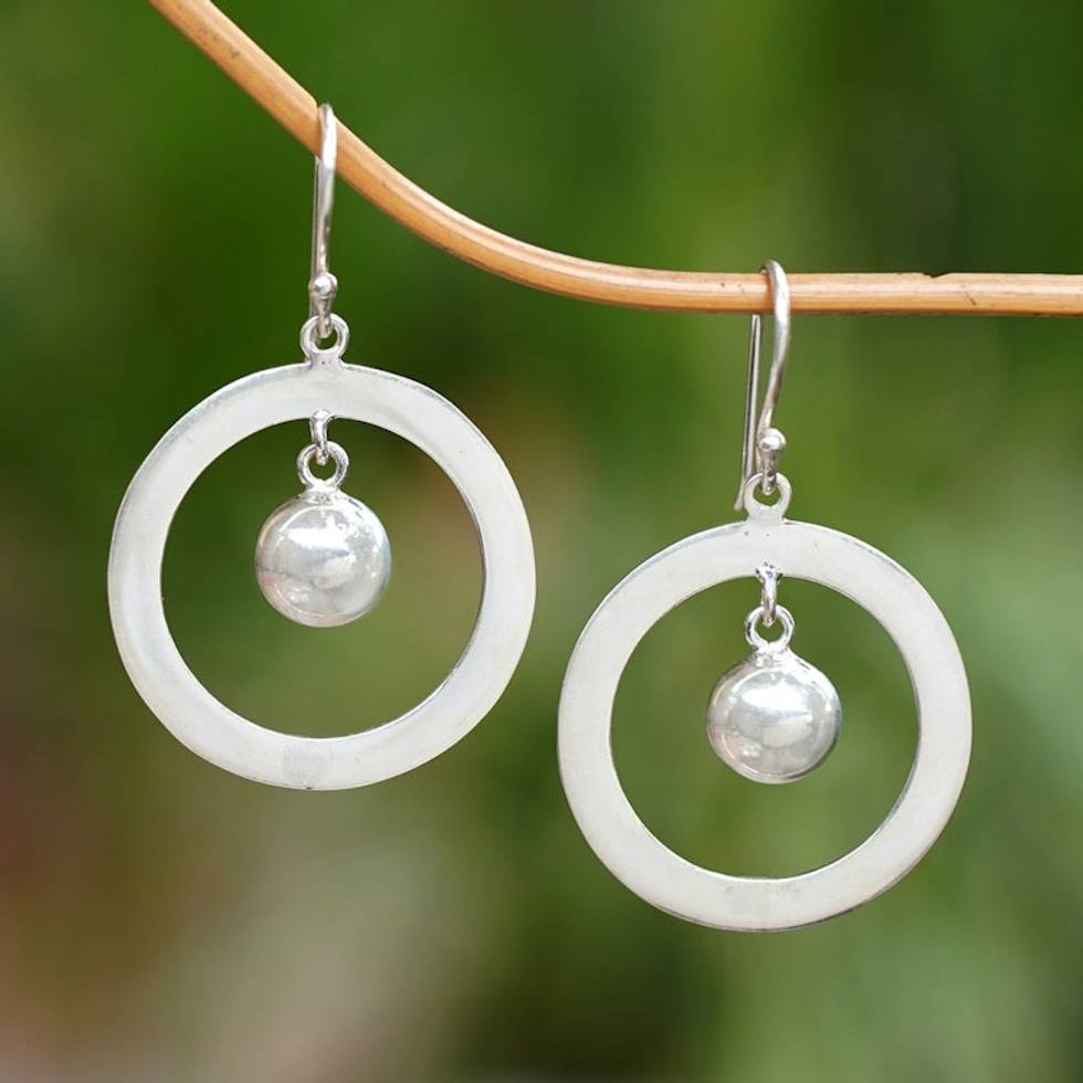 Sterling Silver Dangle Earrings from Indonesia 'Circles of Joy' Item ID: 2671734826