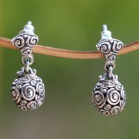 Sterling Silver Dangle Earrings from Indonesia 'Spiral Spheres' Item ID: 2671698275