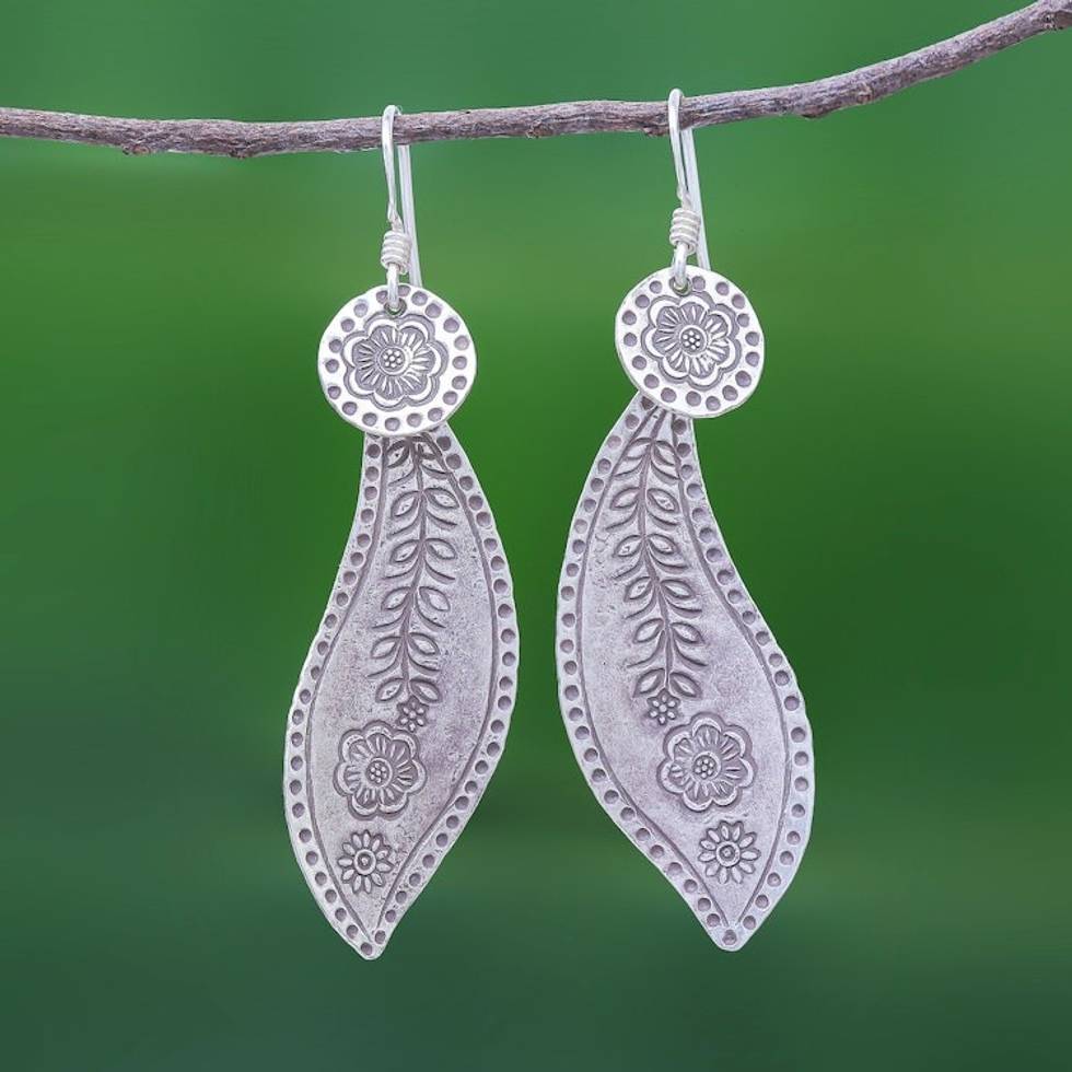 Sterling Silver Dangle Earrings Leaves 'Quiet Nature' Item ID: 2671799794
