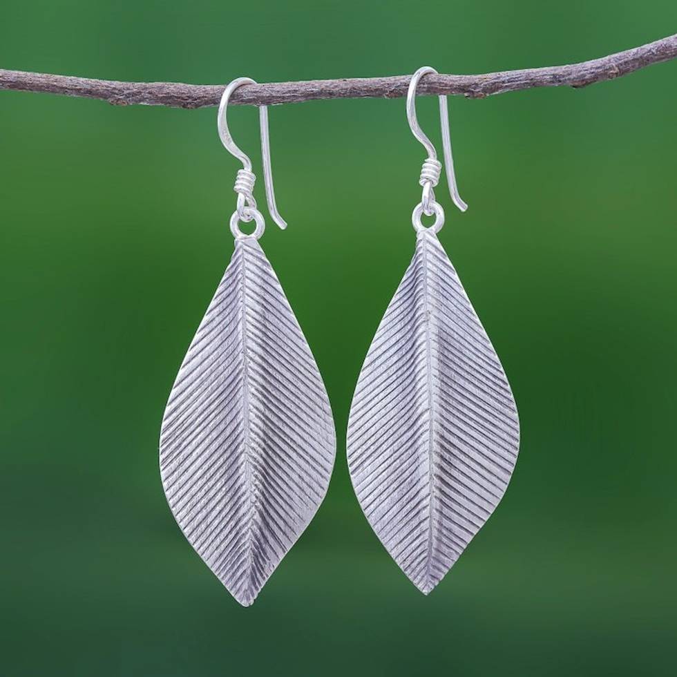 Sterling Silver Dangle Earrings Leaves 'Tulsi Leaf' Item ID: 2671799953