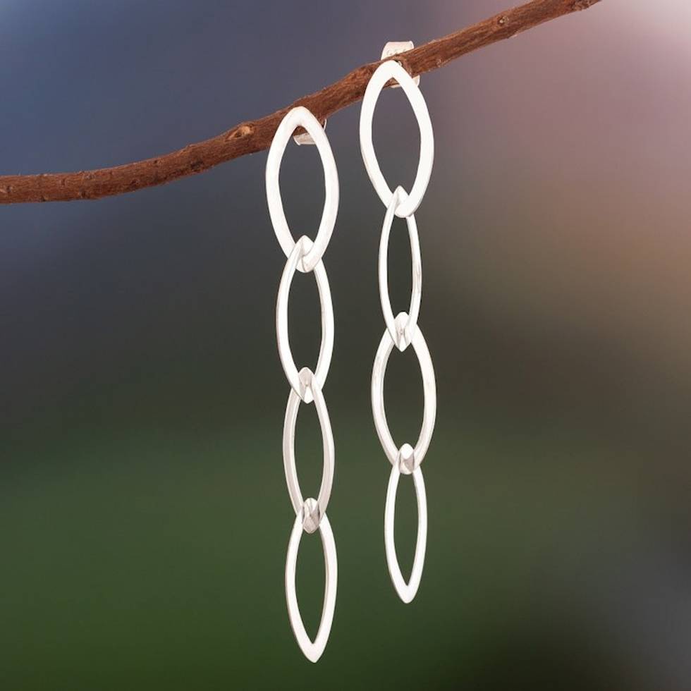 Sterling Silver Dangle Earrings of Oval Links from Peru 'Linked Fortunes' Item ID: 2671400170
