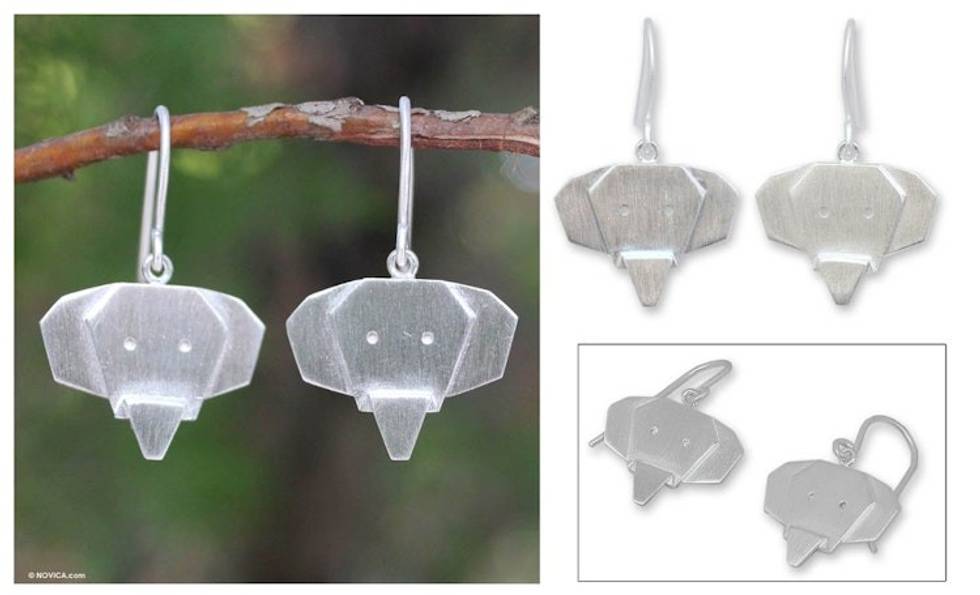 Sterling silver dangle earrings 'Proud Elephants' Item ID: 2671802964