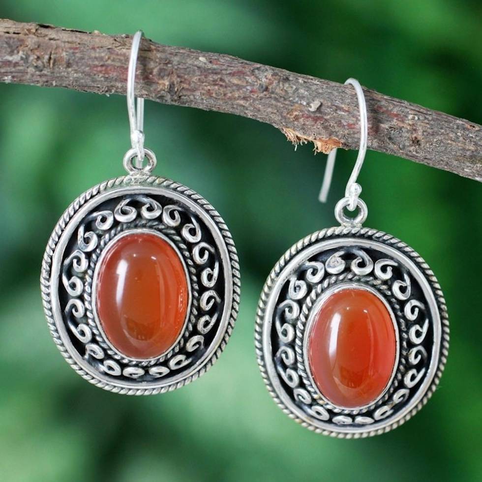 I got these to wear with a deep green colored dress. They are perfect. The color of the stone is beautiful and the movement of the earrings makes them even more interesting. They are delicate, only about 1" long, but still make a statement.
