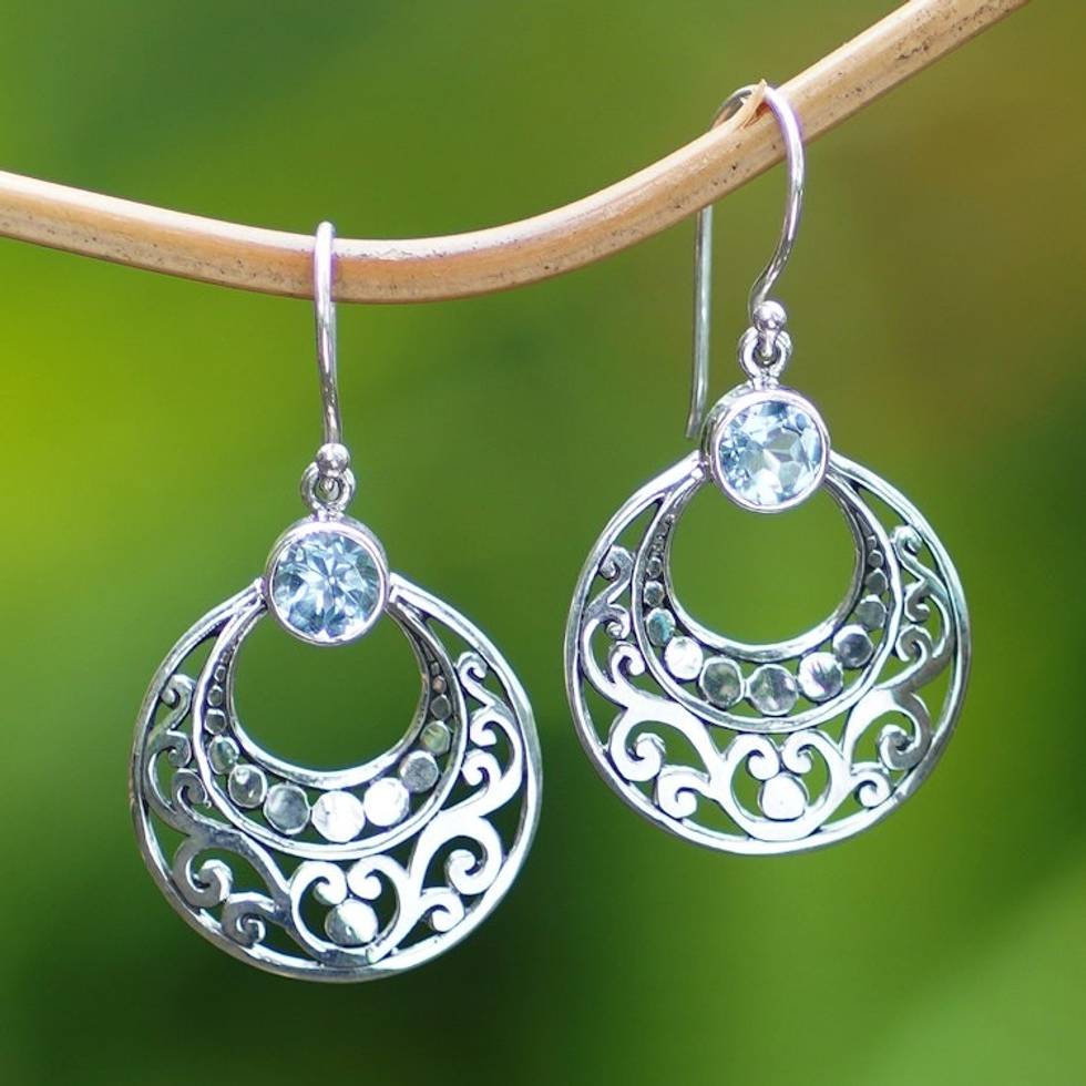 Sterling Silver Dangle Earrings with 2-Carat Blue Topaz Gems 'Empress's Trust' Item ID: 2671763156