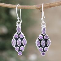 Sterling Silver Dangle Earrings with 3-Carat Amethyst Gems 'Purple Tower' Item ID: 2671786769