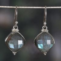 Sterling Silver Dangle Earrings with 33-Carat Labradorite 'Evening Kiss' Item ID: 2671624853