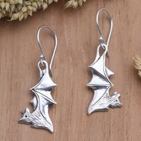Sterling Silver Dangle Earrings with Bat Motif 'Guardian Spirit' Item ID: 2671555065