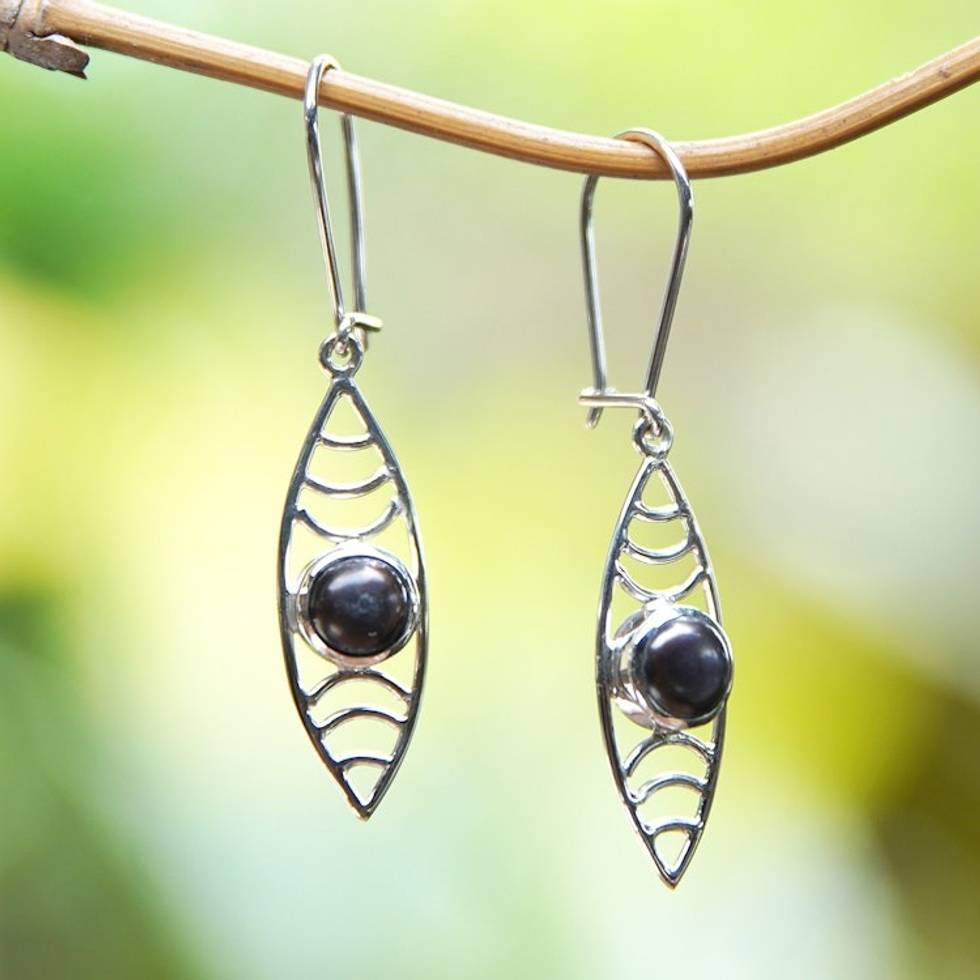 Sterling Silver Dangle Earrings with Black Cultured Pearls 'Surf Style' Item ID: 2671765428