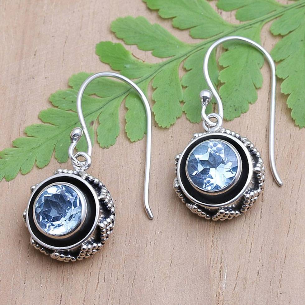 Sterling Silver Dangle Earrings with Blue Topaz Gemstones 'Batur in Aqua' Item ID: 2671763057