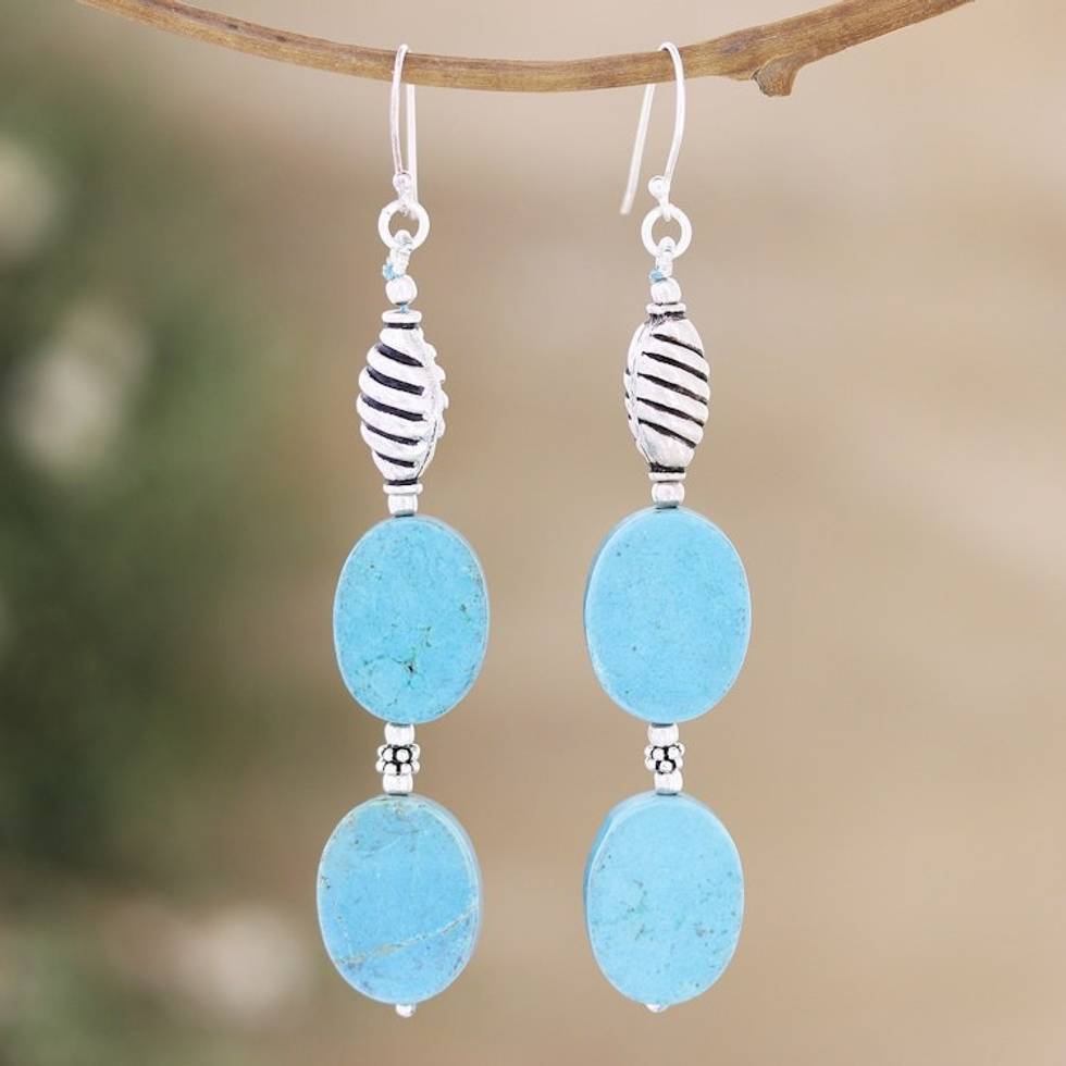 Sterling Silver Dangle Earrings with Calcite Cabochons 'Healing Dreams' Item ID: 2671786490