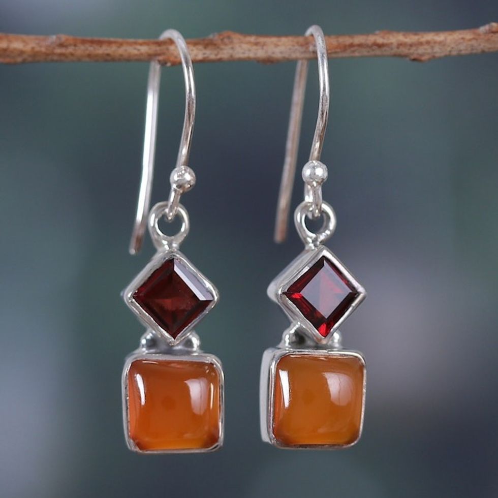 Sterling Silver Dangle Earrings with Carnelian and Garnet 'Flaming Harmony' Item ID: 2671786975