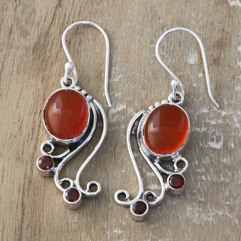 Sterling Silver Dangle Earrings with Carnelian and Garnet 'Vibrant Swirls' Item ID: 2671787015