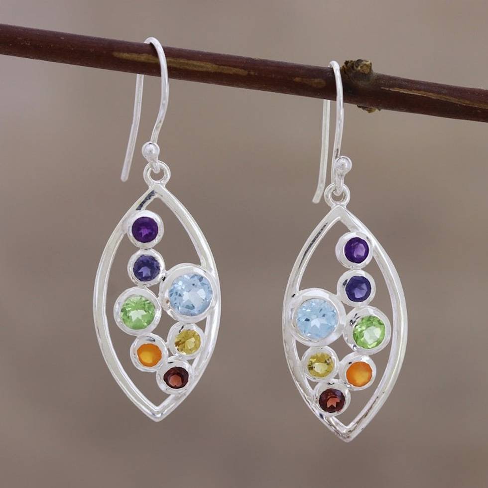 Sterling Silver Dangle Earrings with Chakra Gemstones 'Leafy Chakra' Item ID: 2671789897