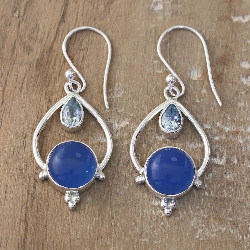 Sterling Silver Dangle Earrings with Chalcedony Blue Topaz 'Dual Symphony' Item ID: 2671786792