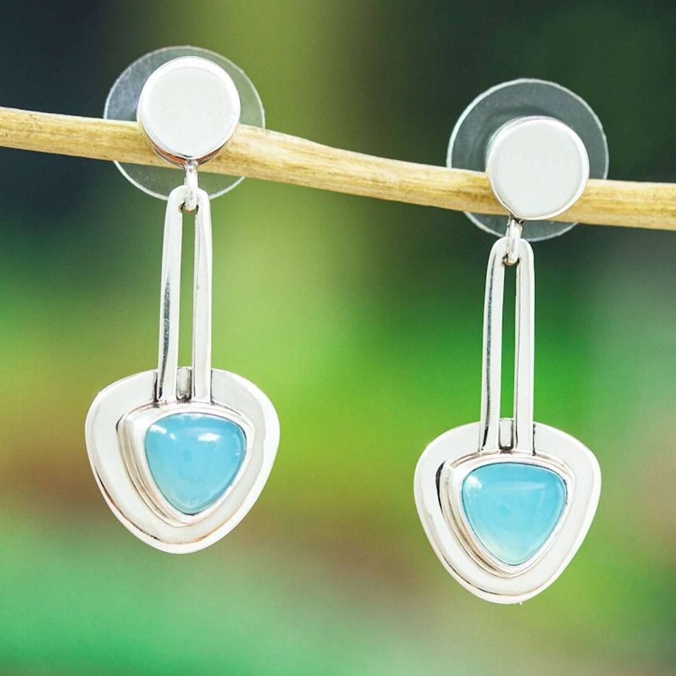 Sterling Silver Dangle Earrings with Chalcedony Stones 'Angel's Spirit' Item ID: 2669940072