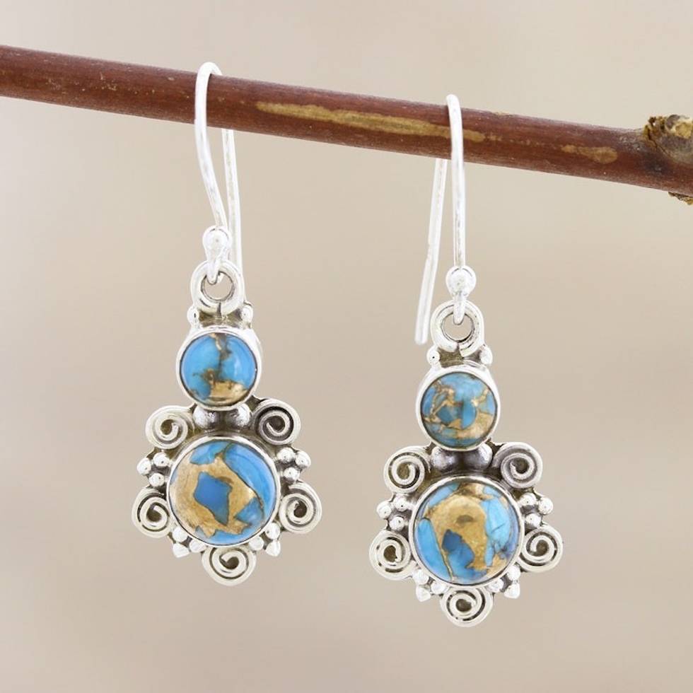 Sterling Silver Dangle Earrings with Composite Turquoise 'Earth Love' Item ID: 2671789267