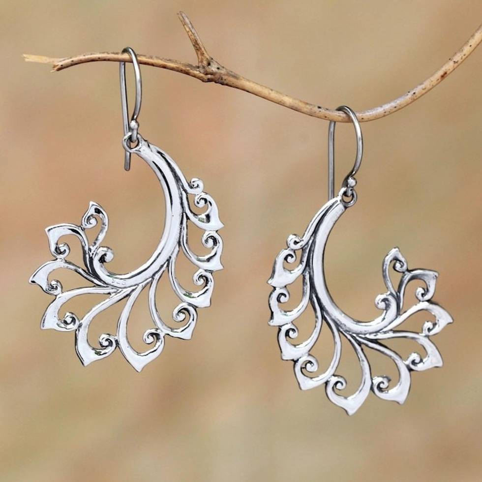 Sterling Silver Dangle Earrings with Curl Patterns from Bali 'Curling Bloom' Item ID: 2671736588