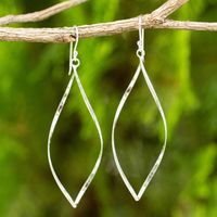 Sterling Silver Dangle Earrings with Curved Marquise Shape 'Curvature' Item ID: 2671802048