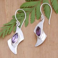 Sterling Silver Dangle Earrings with Faceted Amethyst Stones 'Purple Boomerang' Item ID: 2670659637