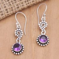 Sterling Silver Dangle Earrings with Faceted Amethyst Stones 'Purple Eyes' Item ID: 2671748272