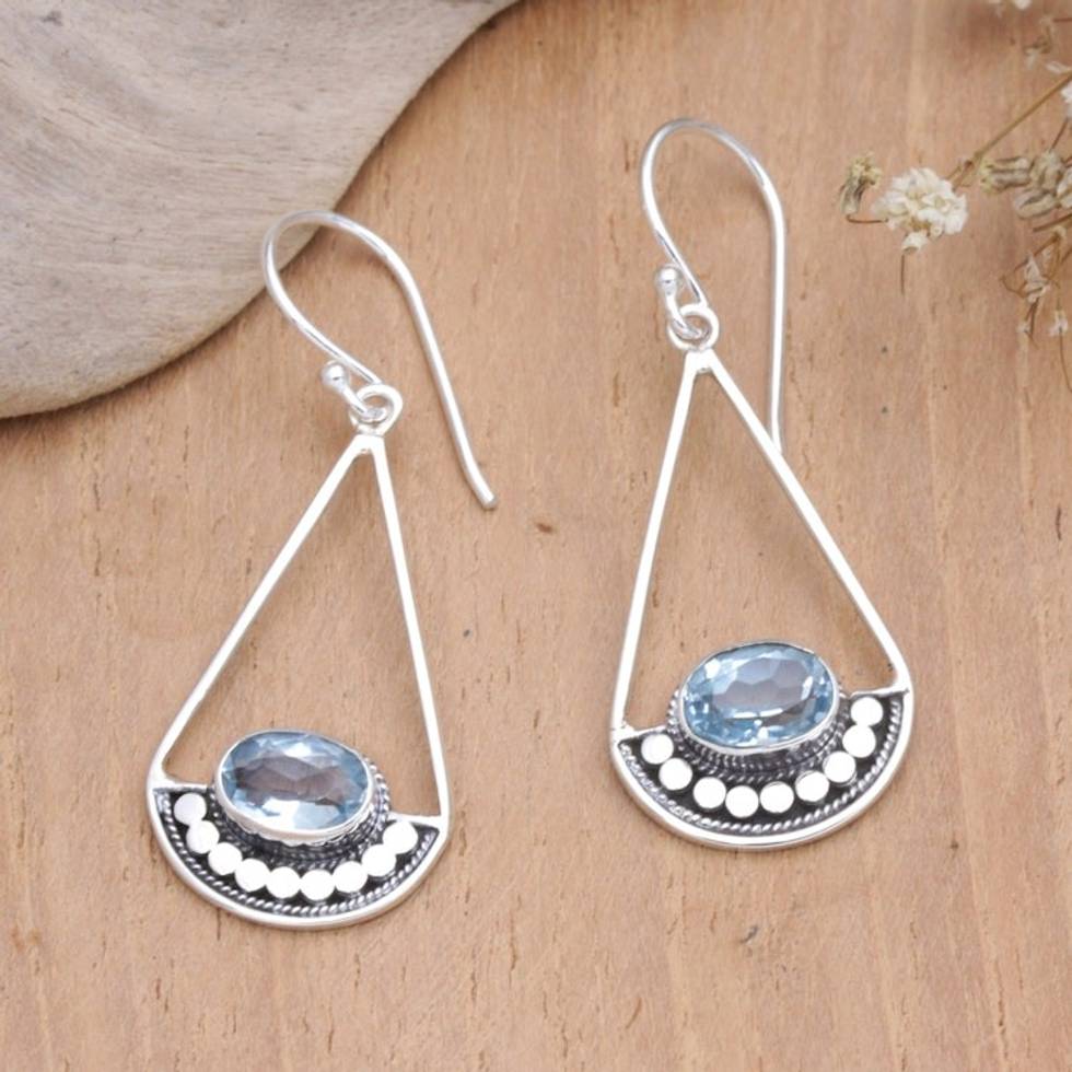 Sterling Silver Dangle Earrings with Faceted Blue Topaz Gems 'Serenity Pendulum' Item ID: 2671747750