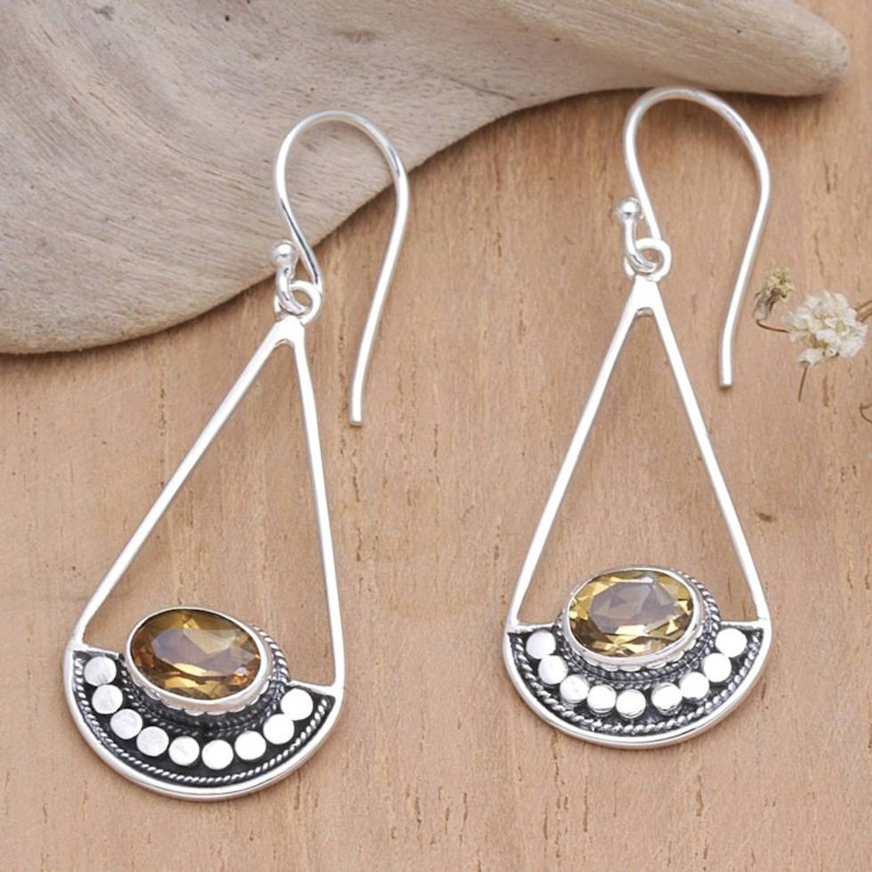 Sterling Silver Dangle Earrings with Faceted Citrine Stones 'Optimism Pendulum' Item ID: 2671747814