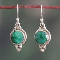 'Dancing Fruit,' malachite dangle earrings have the right name because the earrings have a light, informal, happy, youthful quality and yet are a refined, elegant beauty. Happy with purchase.