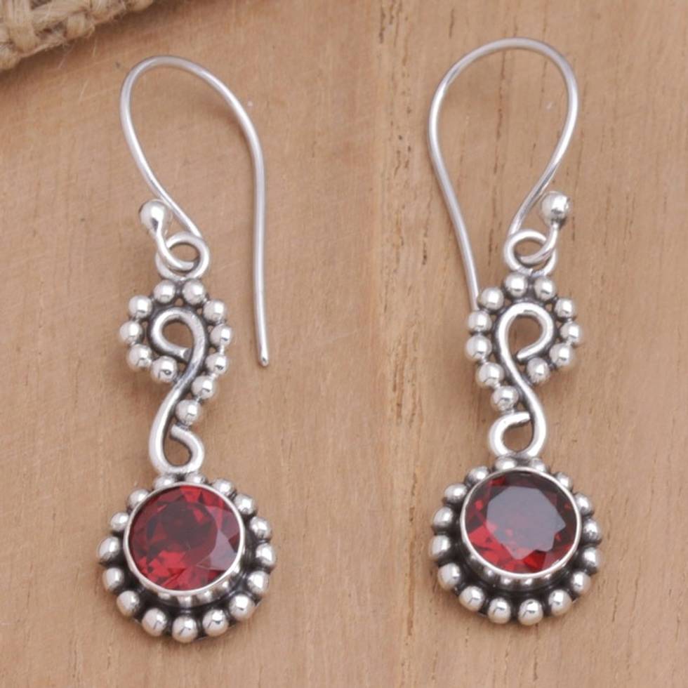 Sterling Silver Dangle Earrings with Faceted Garnet Stones 'Carmine Eyes' Item ID: 2671747831