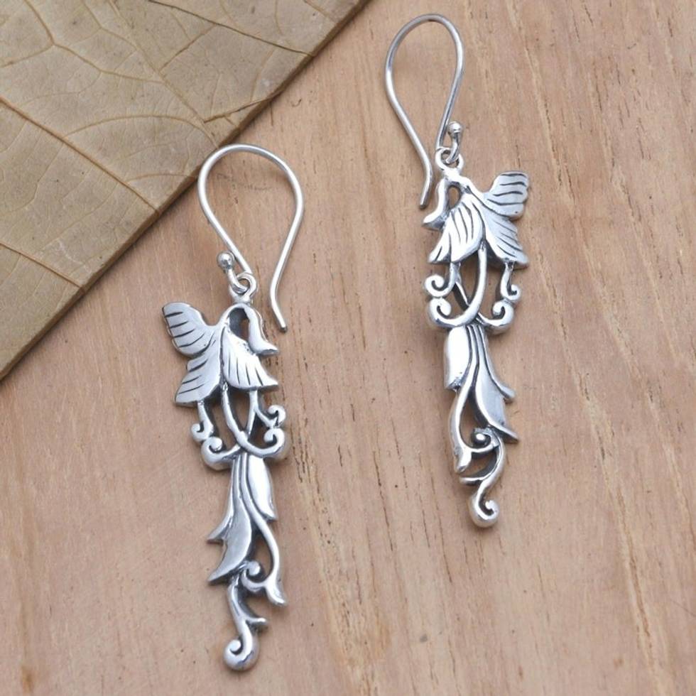 Sterling Silver Dangle Earrings with Floral Motif 'Shimmering Tendrils' Item ID: 2671746919