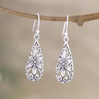 Sterling Silver Dangle Earrings with Floral Motifs 'Blooming Tears' Item ID: 2671787368