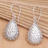 Sterling Silver Dangle Earrings with Hammered Details 'Luminous Teardrops' Item ID: 2671748573
