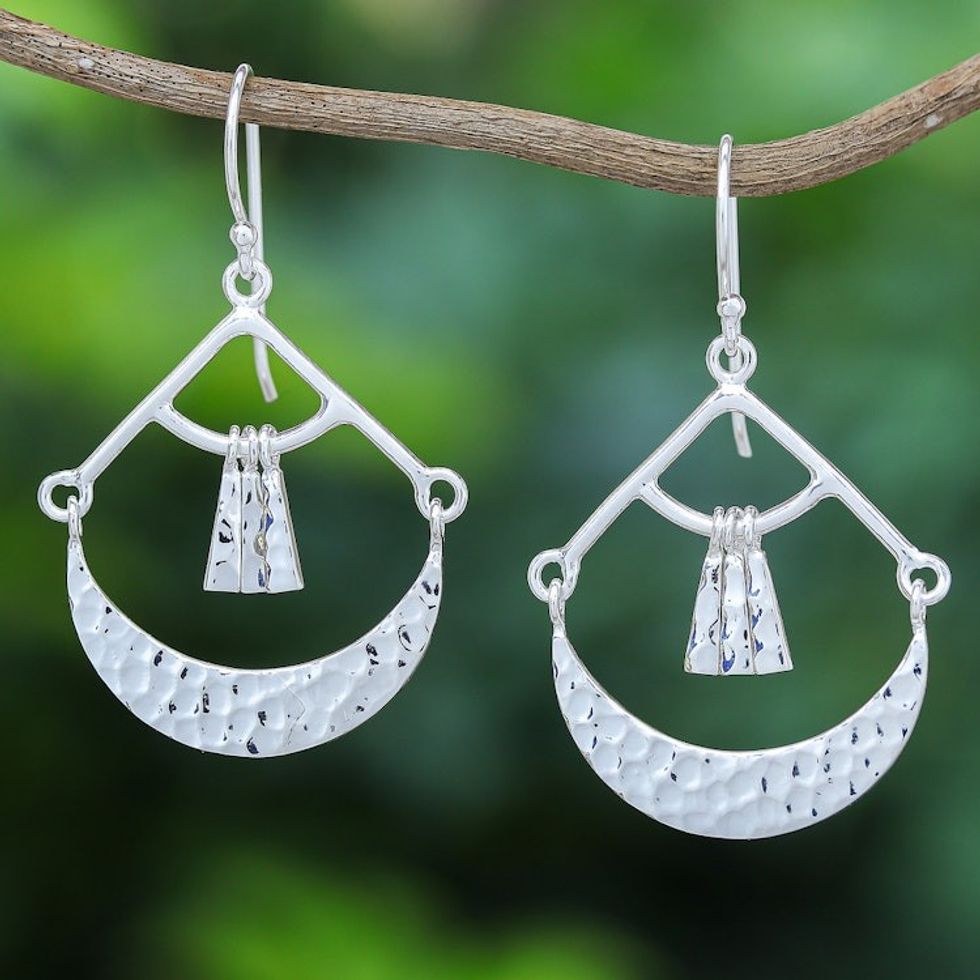 Sterling Silver Dangle Earrings with Hammered Finish 'Swinging Party' Item ID: 2671797841