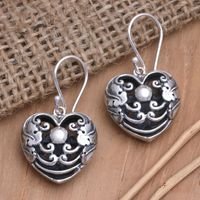 Sterling Silver Dangle Earrings with Heart Motif 'Cage of Love' Item ID: 2671815774