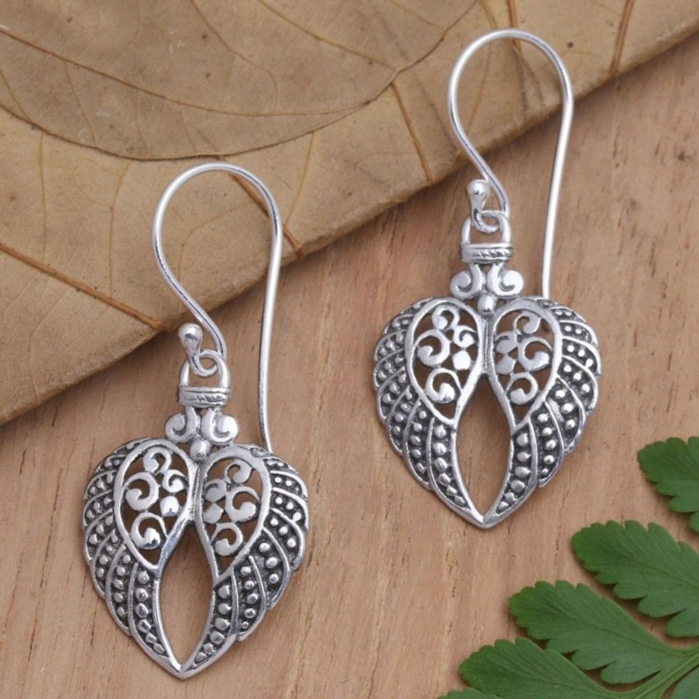 Sterling Silver Dangle Earrings with Heart Motif 'Flying Heart' Item ID: 2671747621