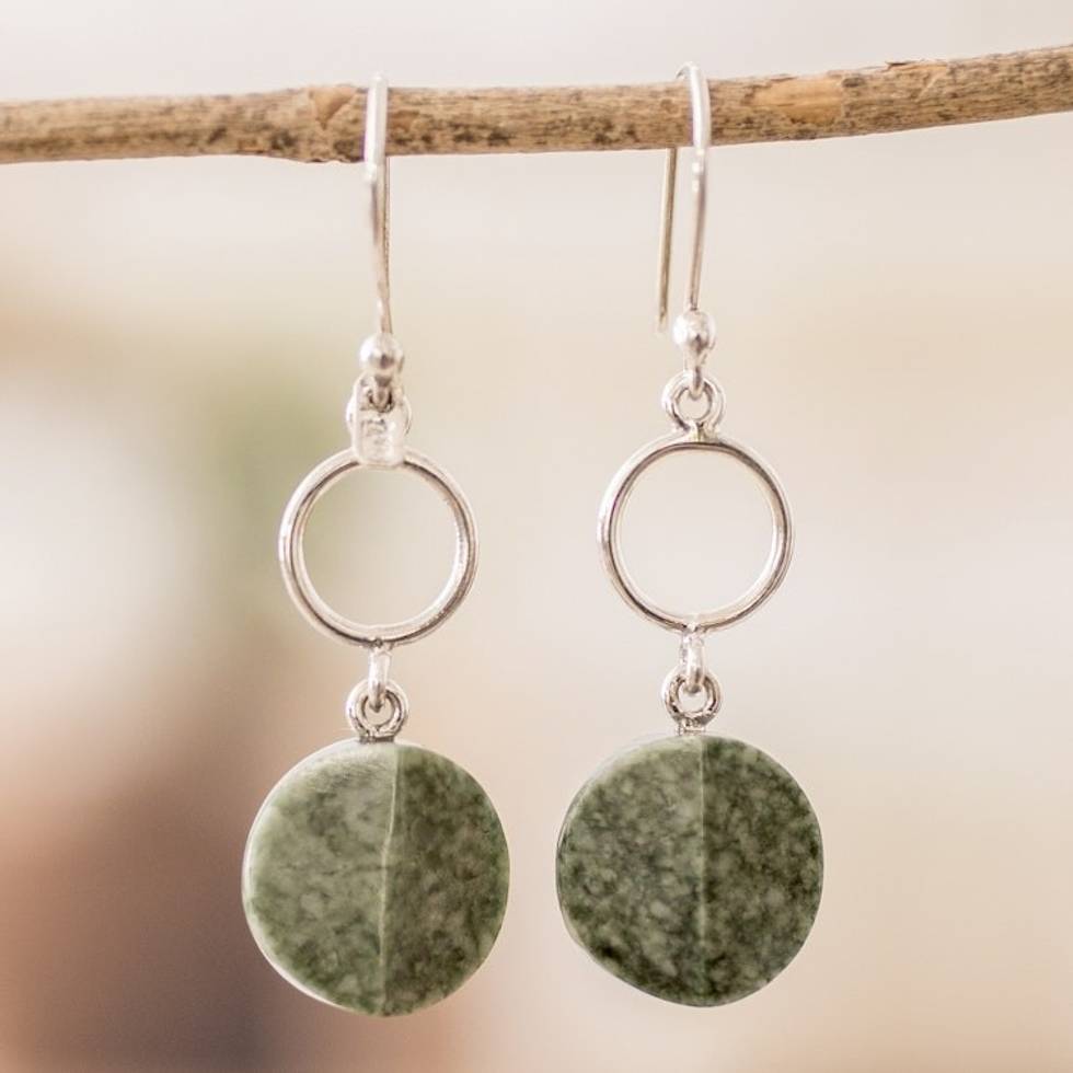 Sterling Silver Dangle Earrings with Hoop Green Jade Disc 'Green Majesty' Item ID: 2671769253