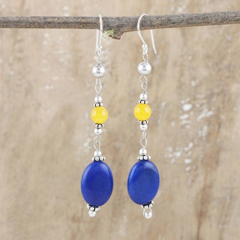 Sterling Silver Dangle Earrings with Lapis Lazuli and Jade 'Royal Muse' Item ID: 2671787161